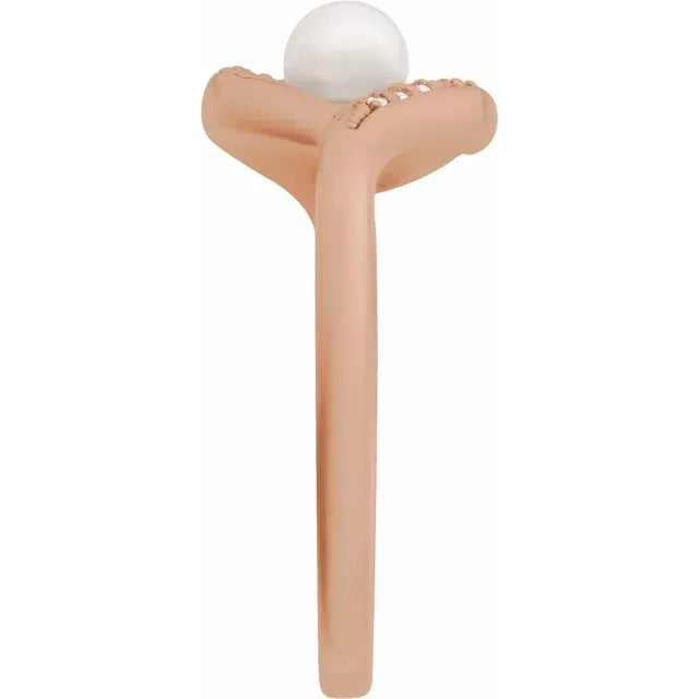 14K Rose Cultured Akoya Pearl & .05 CTW Natural Diamond Ring