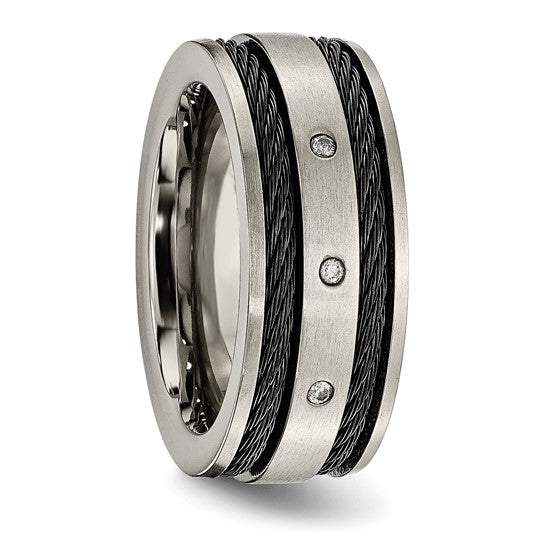 Chisel Titanium Brushed Black IP-plated Cable 1/20 Carat Diamond 10mm Band TB265AA-10